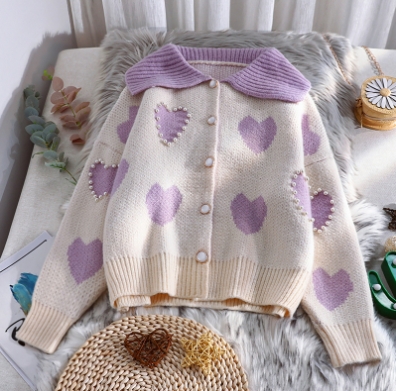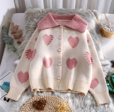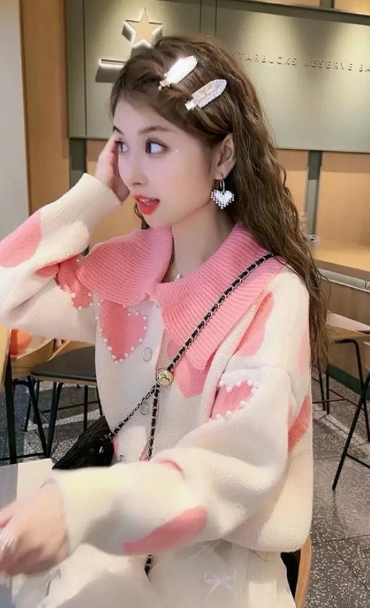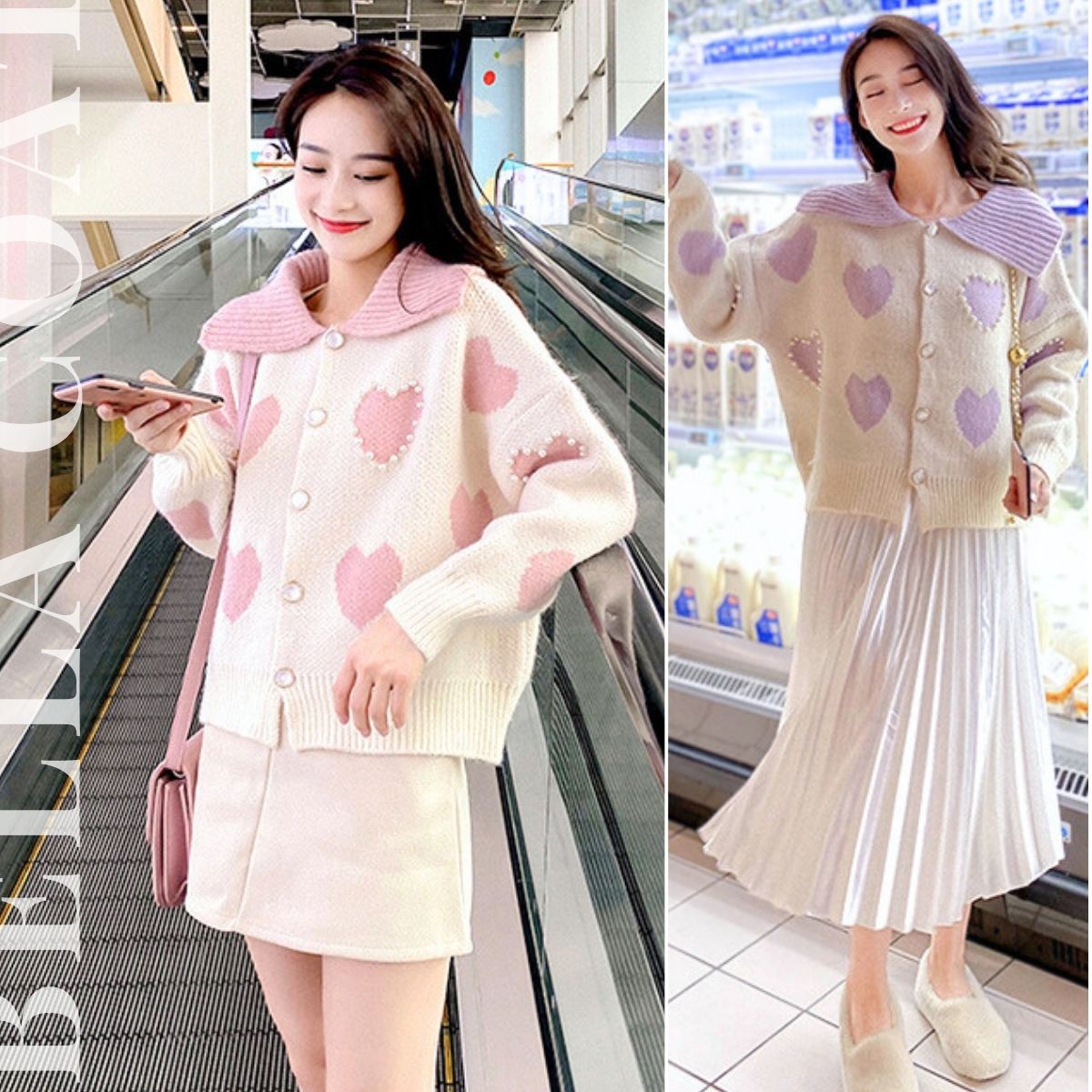 เสื้อไหมพรมเกาหลี งานไหมพรมทอแน่นผสมวูล นิ่มสบาย ยืดหยุ่นได้ดีมาก ไม่รัดรูป แต่งลายหัวใจ