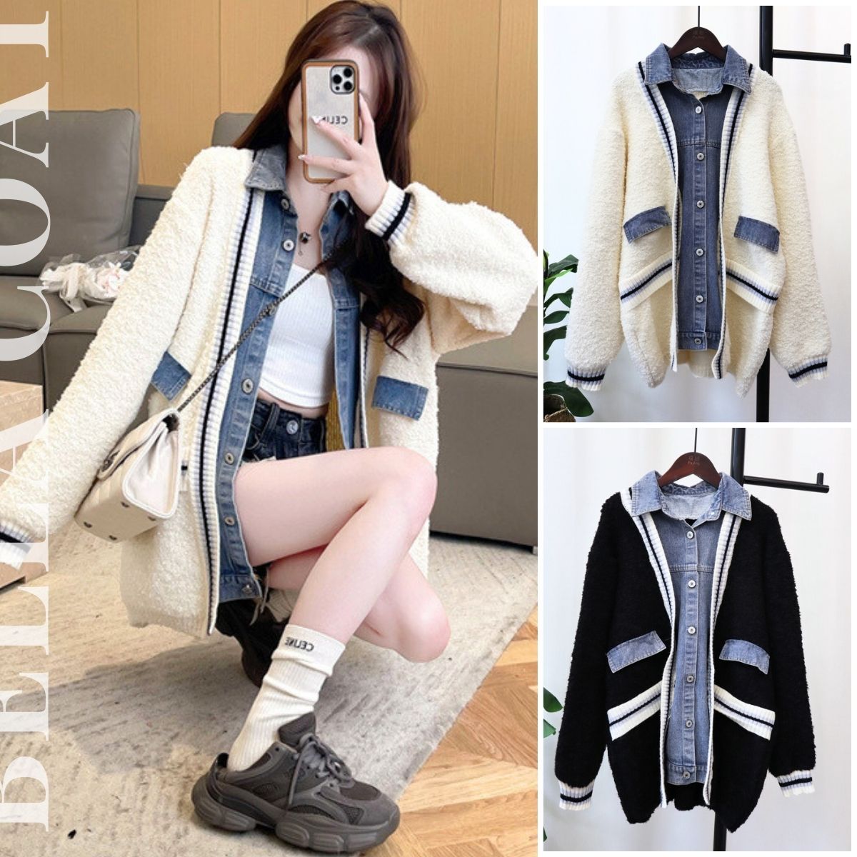แจ็คเก็ตขนแกะเทียมแต่งผ้ายีนส์เท่ๆ บอกเลยดีไซน์สวยมากๆคร่า
