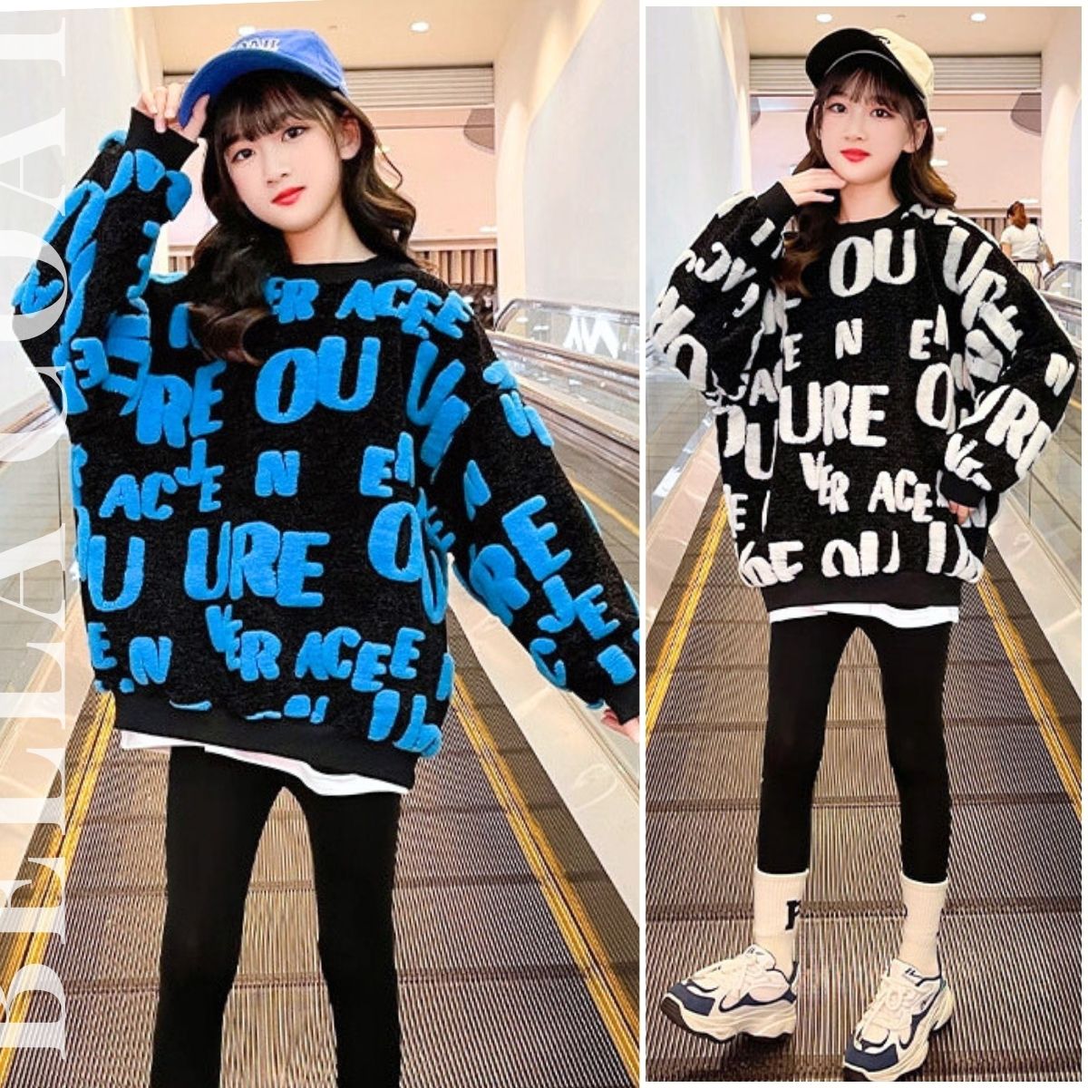 เสื้อไหมพรมคอกลม แต่งลายภาษาอังกฤษทอนูนเก่ๆ