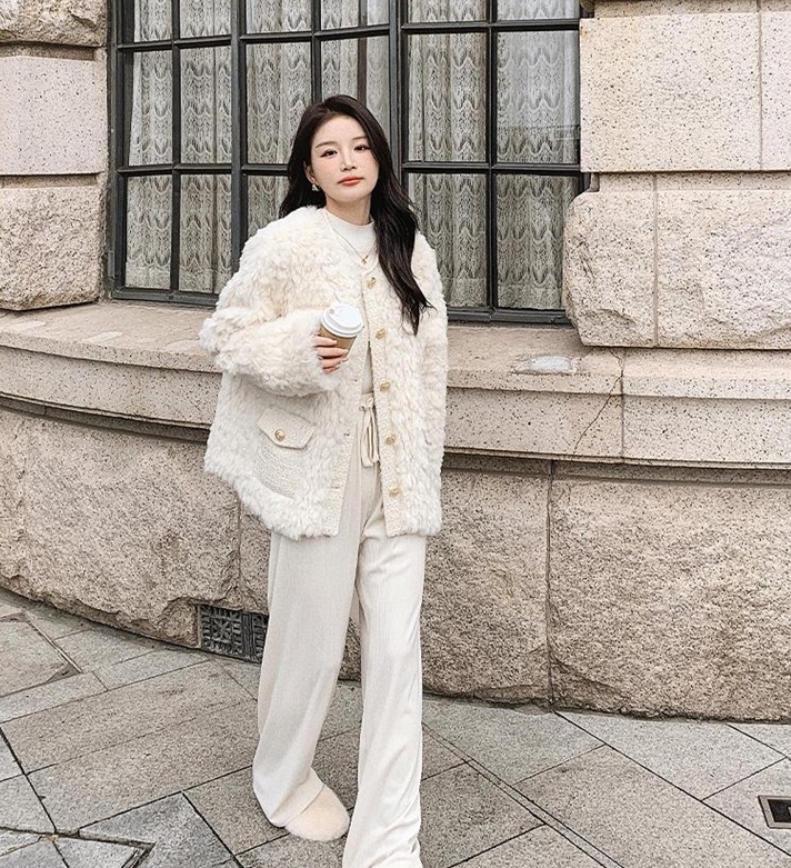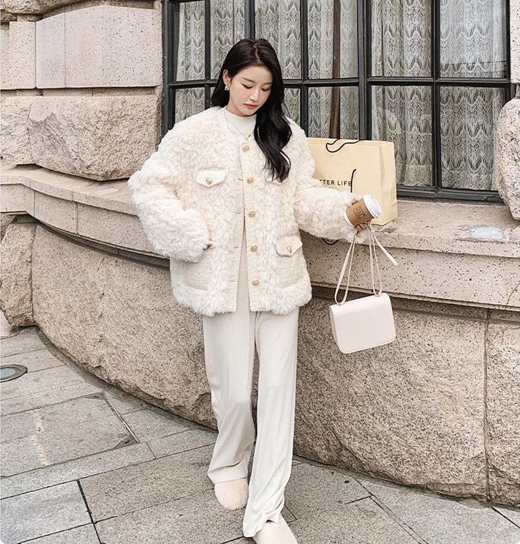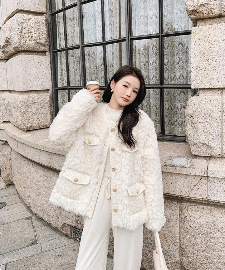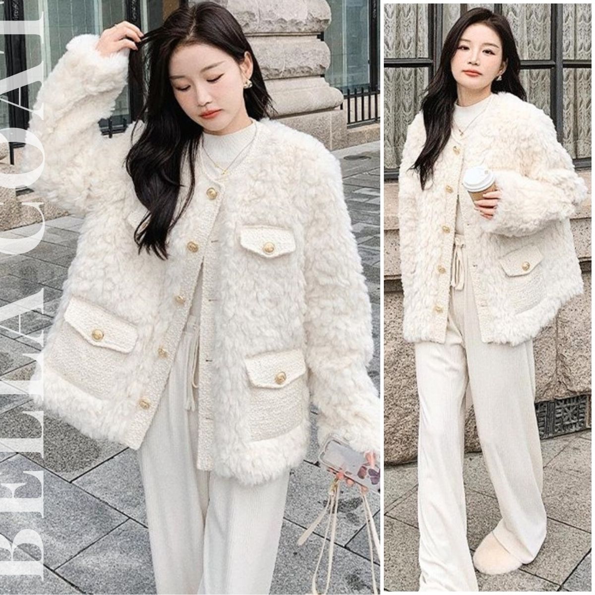 🧥❁Fur Coat❁ เสื้อโค้ทขนเฟอร์ ดีเทลแต่งผ้าทวิส ดีไซน์สวยเรียบหรูดูแพง ต้องยกให้รุ่นนี้เลยค่ะ กระเป๋าด้านล่าง 2 ข้าง
